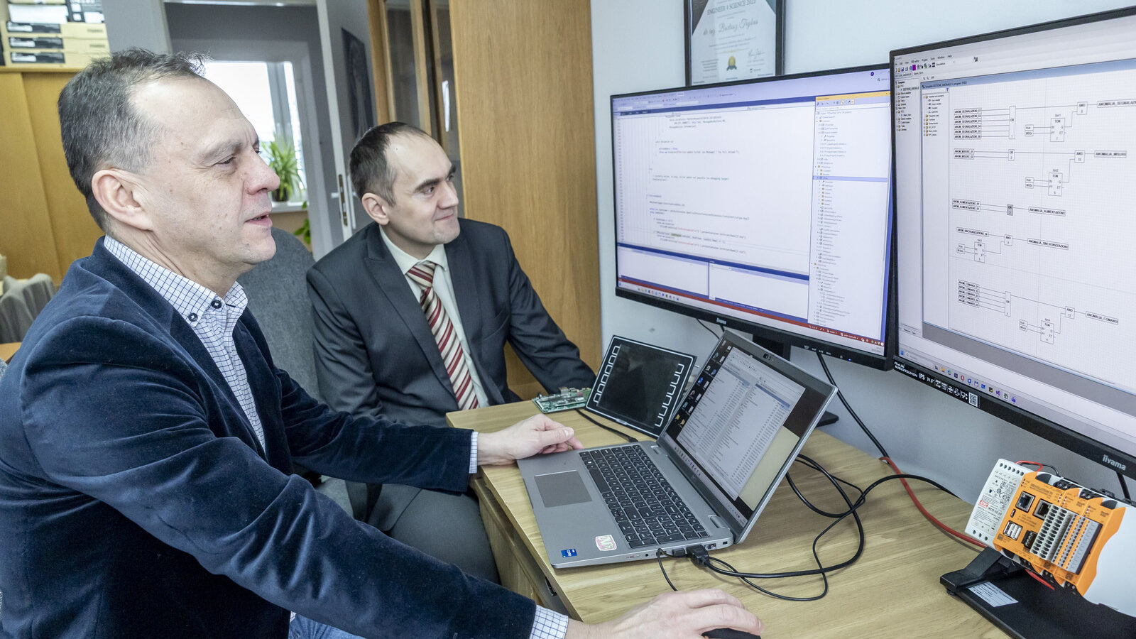 Dr inż. Bartosz Trybus dodaje, że współpraca z firmą pozwala od lat prowadzić badania oparte na realnych problemach technicznych. Istotną ich częścią stało się zagadnienie stabilności kodu oraz przewidywalności działania bloków funkcyjnych na różnych platformach sprzętowych. Rozwijany jest także model obsługi awarii, którego celem jest uporządkowanie sposobów klasyfikacji błędów i reakcji systemu na nieprawidłową pracę elementów logiki. Takie narzędzia będą wspierać dalszy rozwój systemów sterowania o większej złożoności.